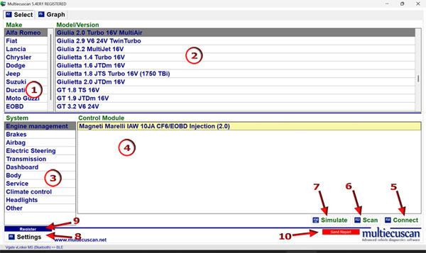 10. SEND REPORT button - Click this button to send Diagnostic Report to Multiecuscan server. The