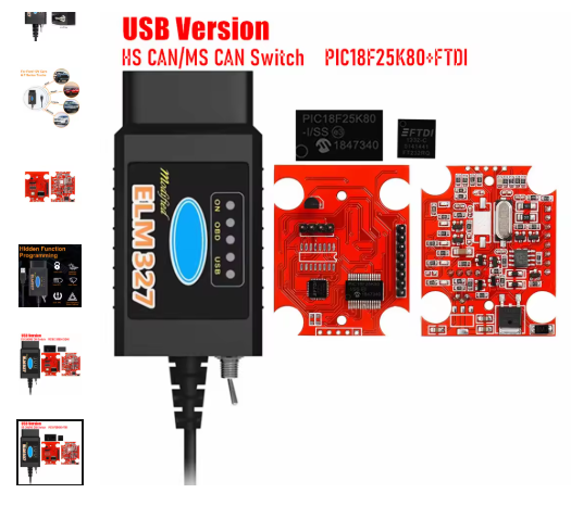 It is this one: OBD2 Car Diagnostic Tool elm 327 HS CAN /MS CAN ELM327 USB V1.5 FTDI/CH340 PIC18F25K80